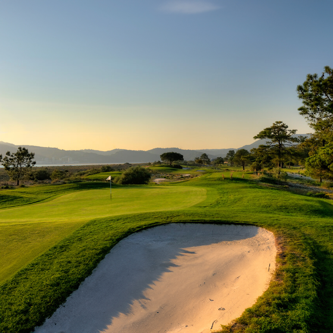 O campo de golfe da Quinta do Peru é uma obra-prima visual e estratégica, harmoniosamente integrado entre as montanhas da Arrábida e a flora local.
